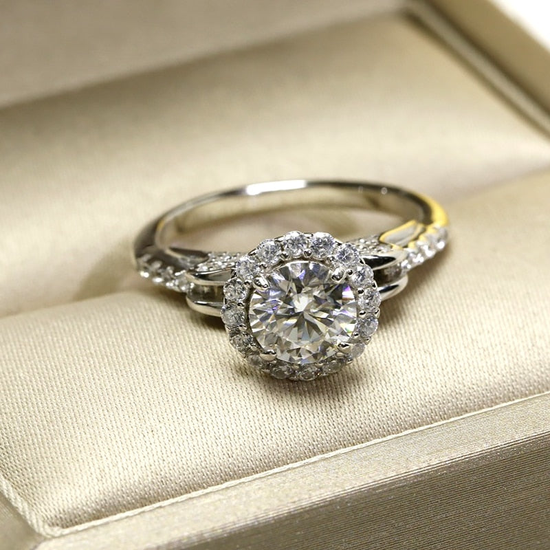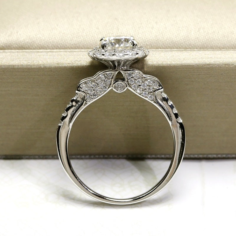 This elegant ring is crafted from 925 sterling silver with a white gold finish, weighing 3g for a lightweight yet durable feel. The ring features a stunning round brilliant diamond, 6.5mm in size, with a total carat weight of 1.0 carat. Set in a secure prong setting, the diamond boasts a D color, VVS1 clarity, and an excellent cut grade, ensuring exceptional brilliance and sparkle. This ring is a perfect symbol of timeless beauty and luxury, ideal for special occasions or as a cherished keepsake.