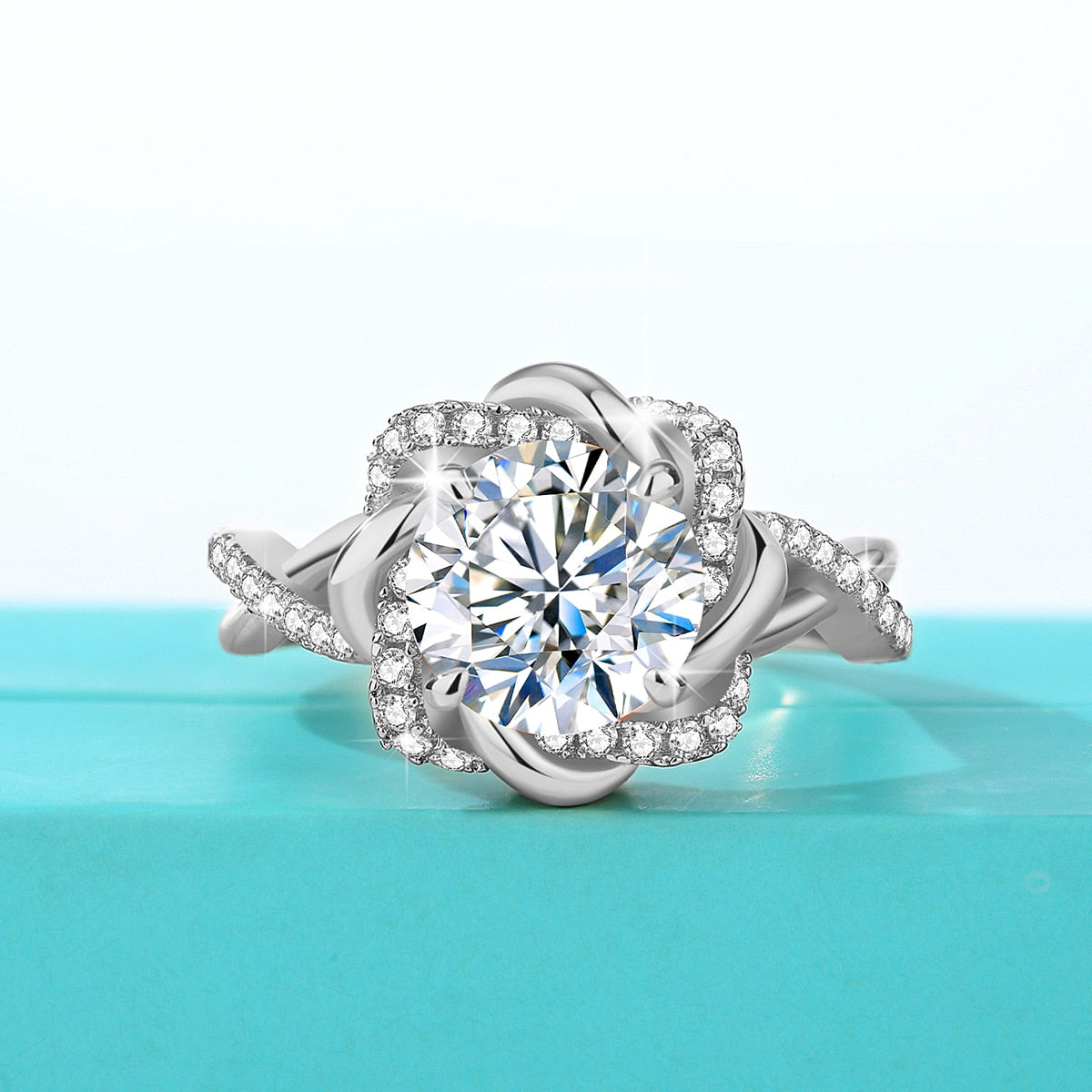 3.0 Ct Round Brilliant in 925 Sterling Silver Diamond Ring, Prong Set